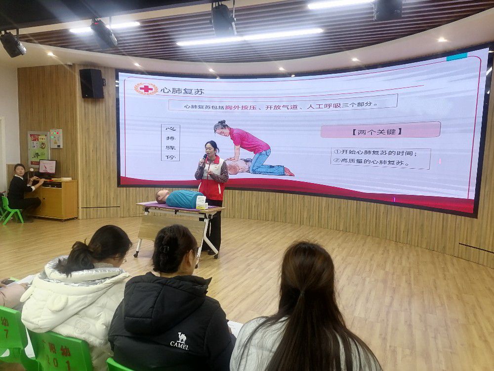 为进一步强化教职工应急救护能力,筑牢安全防护屏障,我园于2025年12月8日组织全体教职工开展心肺复苏应急救护技能专项培训。本次培训以 “实用、高效” 为核心,通过理论讲解、实操演练相结合的方式,帮助教职工系统掌握心肺复苏急救知识与技能。 本次培训覆盖全园教职工,邀请红十字会救护师主讲。重点讲解心肺复苏的适用场景、操作流程(判断意识与呼吸、胸外按压、开放气道、人工呼吸)、常见错误规避及应急处置注意事项。培训过程中,老师通过多媒体演示、模特实操示范,手把手指导教职工规范操作,现场组织分组练习与一对一纠错,保证培训实效。 通过理论及实操培训,教职工全面掌握了心肺复苏的操作方法及应急救护的基本流程。进一步增强了主动学习急救知识、参与应急演练的积极性,形成“人人学急救、会急救、敢急救”的良好氛围。