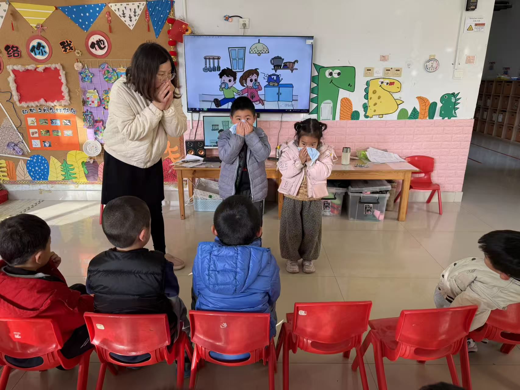 广饶县大码头镇西刘桥幼儿园进行防一氧化碳中毒主题班会活动